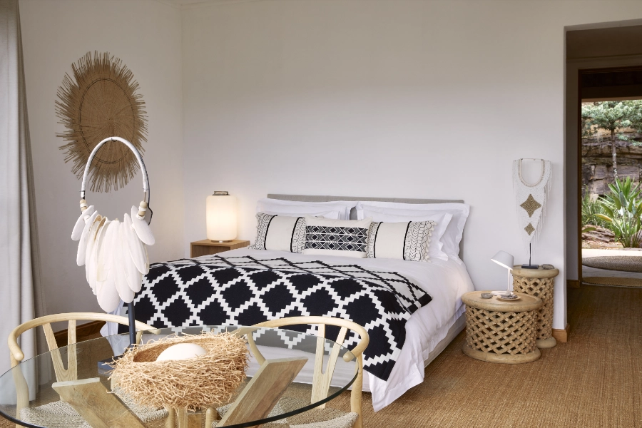 Lush interior gardens, organic textures, and flowing spaces awaken the senses, allowing nature to be felt, heard, and seen at every moment. The boundaries between inside and outside gently dissolve — offering guests a profound sense of tranquility, comfort, and refined luxury, all within the untamed beauty of the South African Bushveld.